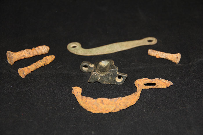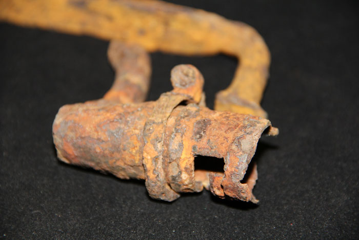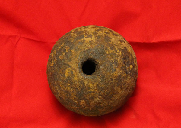 6-ти фунтовая граната и осколки от разорвавшейся гранаты.