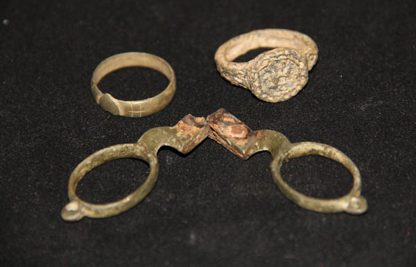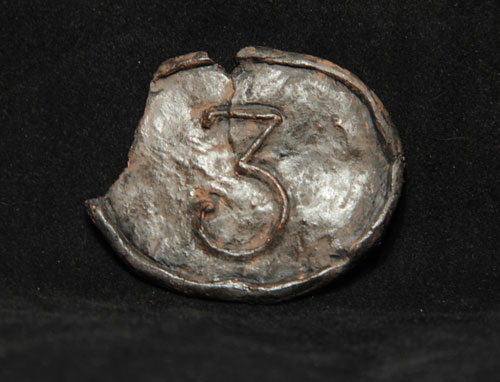 Зона №3 ("Артиллерийская" зона). Кроме свинцовых мушкетных пуль, здесь было найдено много предметов, относящихся к польской артиллерии: знаки с патронной сумки в виде перекрещенных орудий, гренады большие и малые, знак кондуктора польской артиллерии, много ядер.