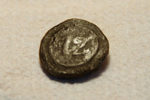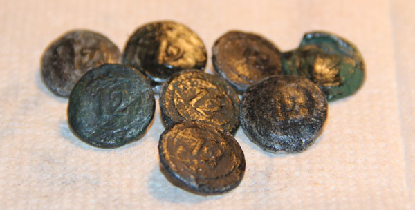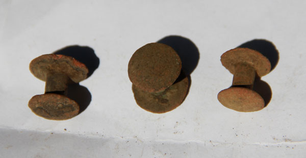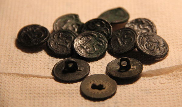 Литьё, латунь, остатки. Диаметр пуговиц 18 мм. Частная коллекция.