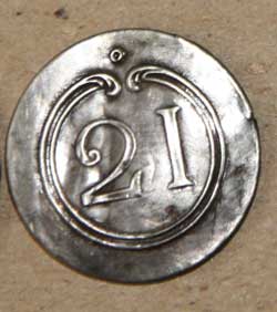 Пуговица офицера 21-го линейного полка. Пуговицы 21-го линейного полка.